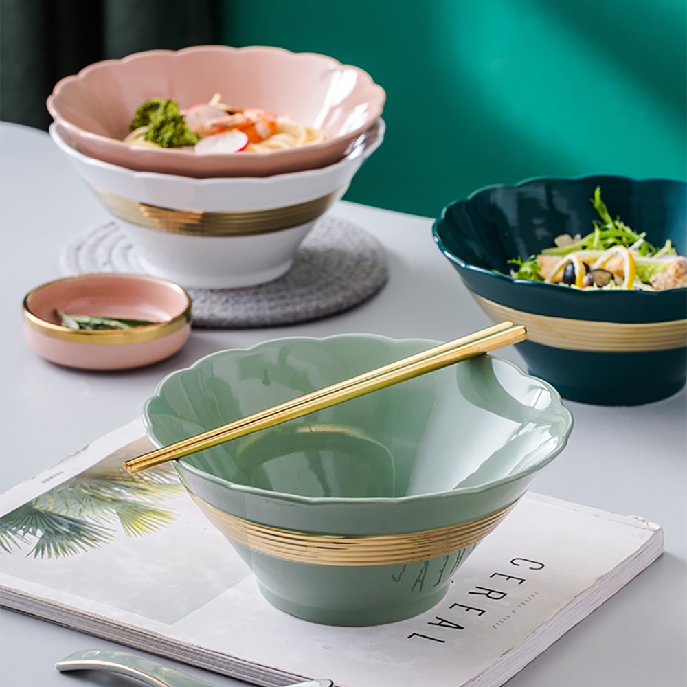 Bát sứ tô đựng mì đai vàng phong cách Bắc Âu cao cấp nhiều màu - VS239
