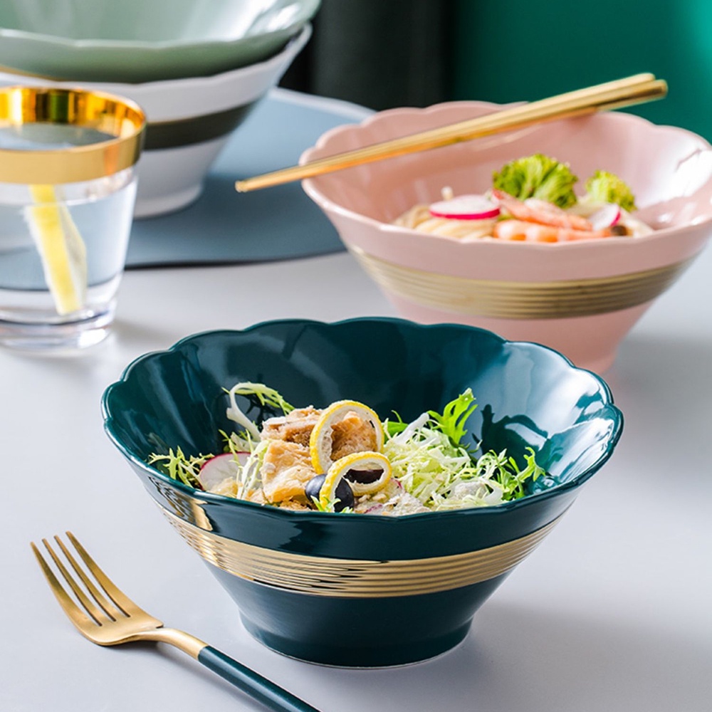 Nhà cửa & Đời sống > Bộ đồ bàn ăn > Tô || Bát sứ tô đựng mì đai vàng phong cách Bắc Âu cao cấp nhiều màu - VS239Còn hàng