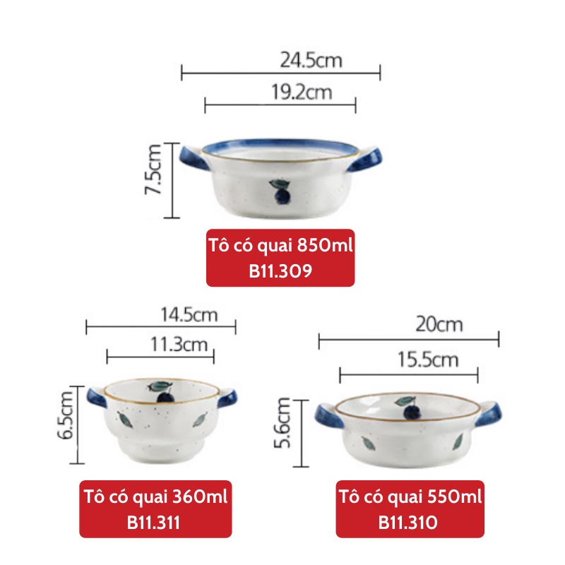 Nhà cửa & Đời sống > Bộ đồ bàn ăn > Tô || Bát sứ - Tô sứ có 2 tai cầm họa tiết việt quất men tiêu - Đồ decor phụ kiện bàn ăn sang trọngCòn hàng