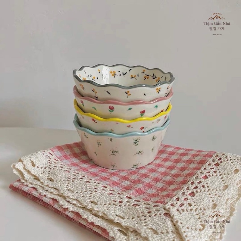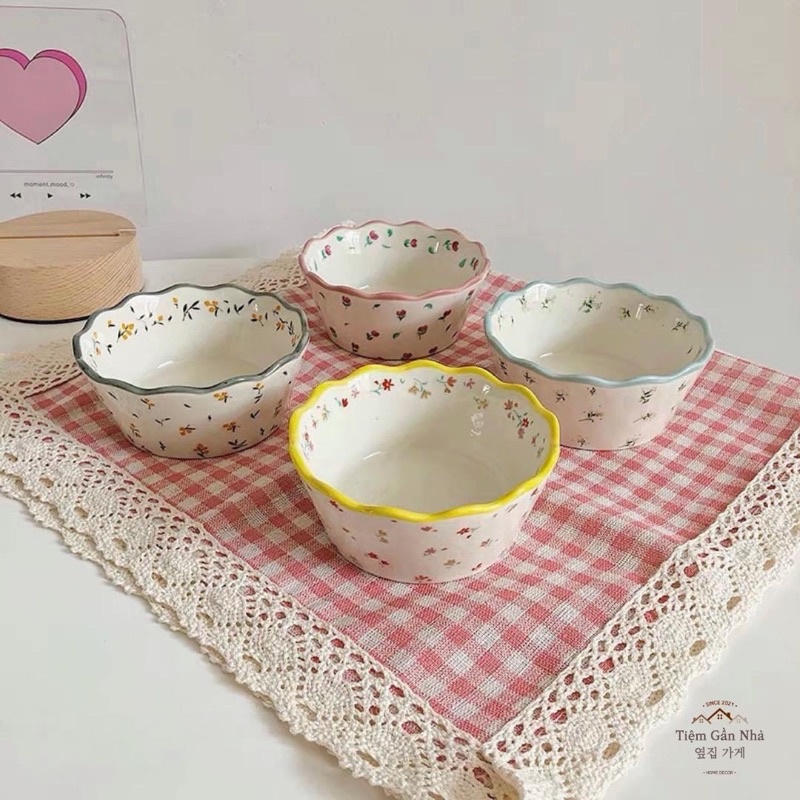 Nhà cửa & Đời sống > Bộ đồ bàn ăn > Tô || Bát sứ/ Tô sứ lớn hoạ tiết hoa nhí vintage viền lượn sóng phong cách Hàn QuốcCòn hàng
