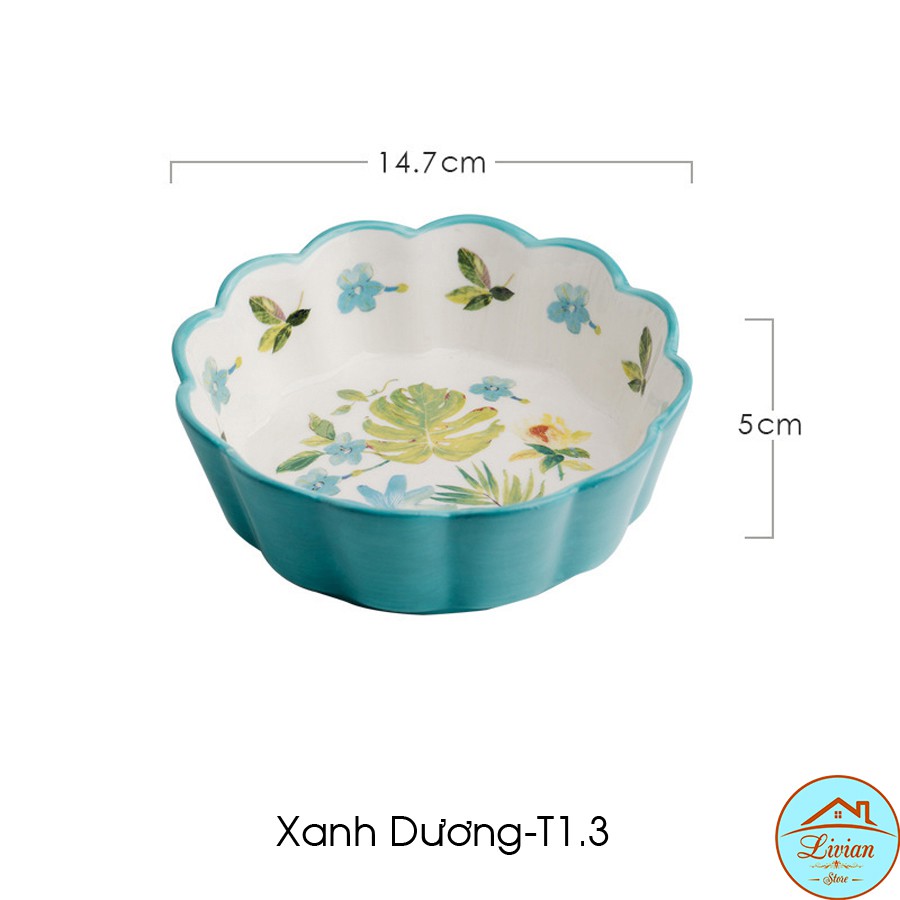 +Tô sứ tròn được thiết kế với các họa tiết hoa lá quả vẽ tay vừa nổi bật sắc nét lại vừa nhẹ nhàng tinh tế.