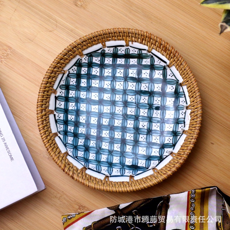 ĐĨA SỨ VIỀN MÂY ĐAN DECORViệt Nam nổi bật với những đồ lưu niệm làm bằng tay từ mây tre và gốm sứ, đơn giản mộc mạc