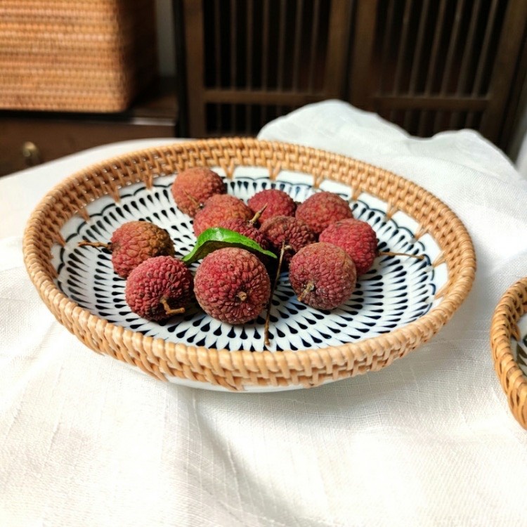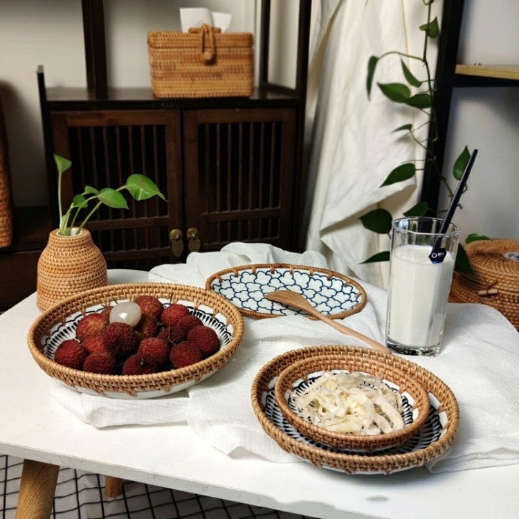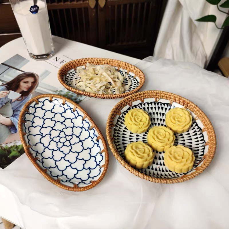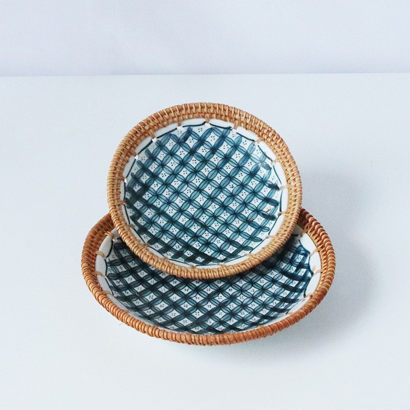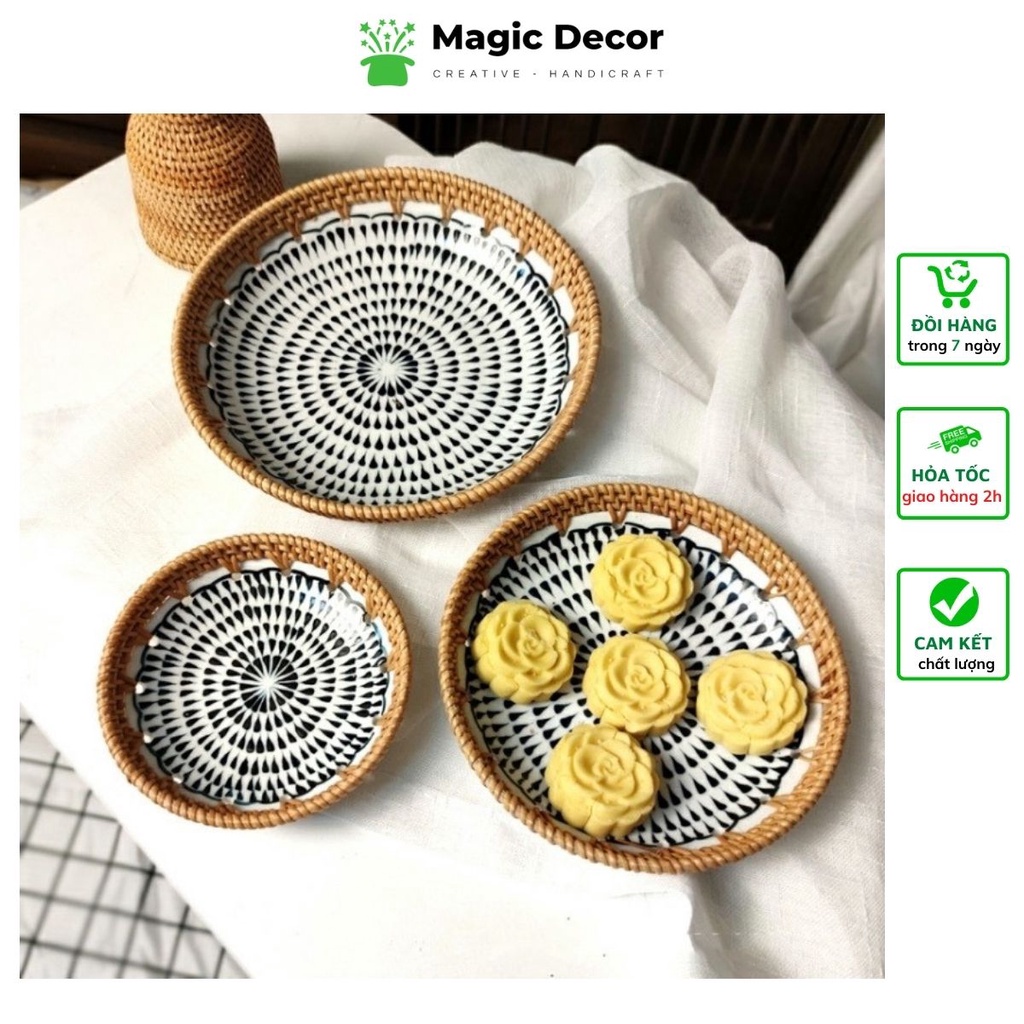 - Chất liệu: Đĩa sứ kết hợp viền mây đan chắc chắn