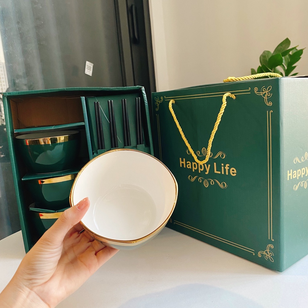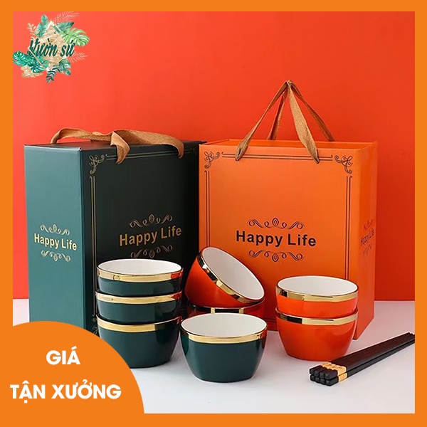 Bộ bát sứ viền vàng cao cấp kèm hộp đựng sang trọng – VS135🏠 VƯỜN SỨ CAM KẾT