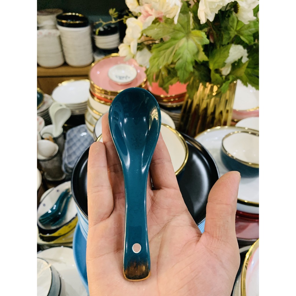 Bộ Bát, Thìa Xanh Lục Viền Vàng Cao Cấp - Ảnh Thật - Sẵn Kho