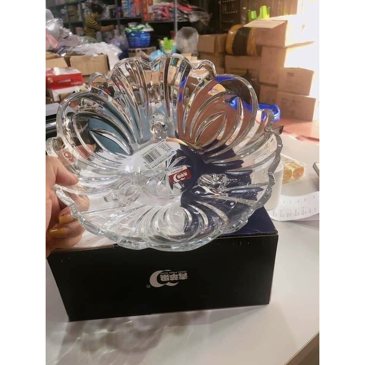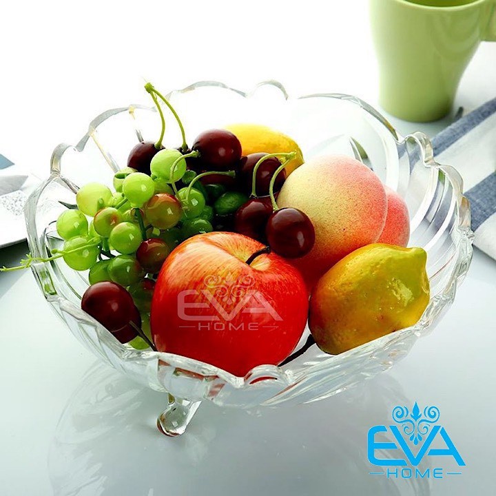 Bát thủy tinh 3 chân đựng hoa quả tiện lợi size 24cm