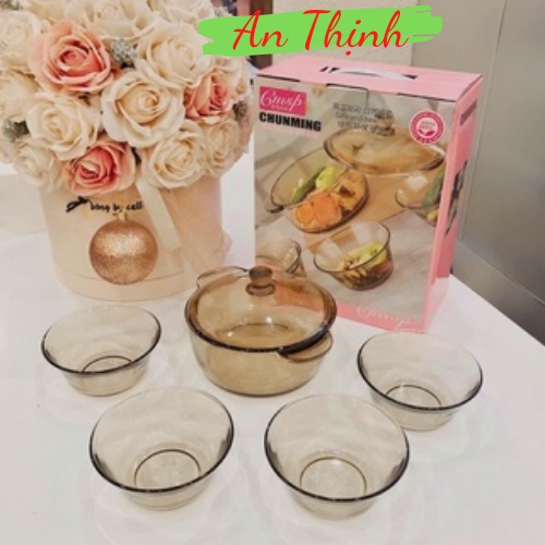 Nhà cửa & Đời sống > Bộ đồ bàn ăn > Tô || Bộ bát thủy tinh 5 món gồm 1 thố 4 chénCòn hàng