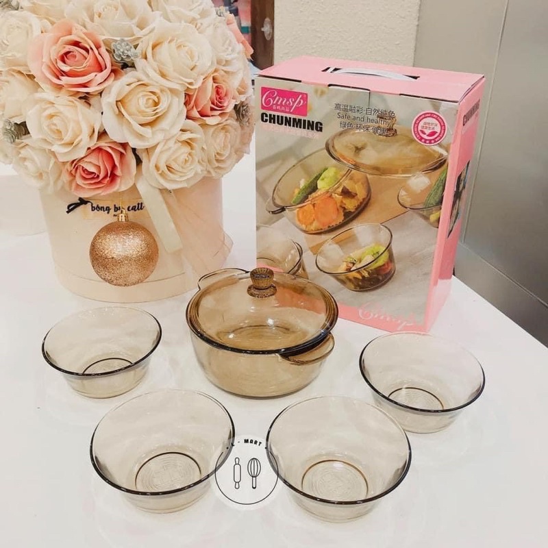 Nhà cửa & Đời sống > Bộ đồ bàn ăn > Tô || Bộ bát thủy tinh 5 món kèm nồi ChunmingCòn hàng