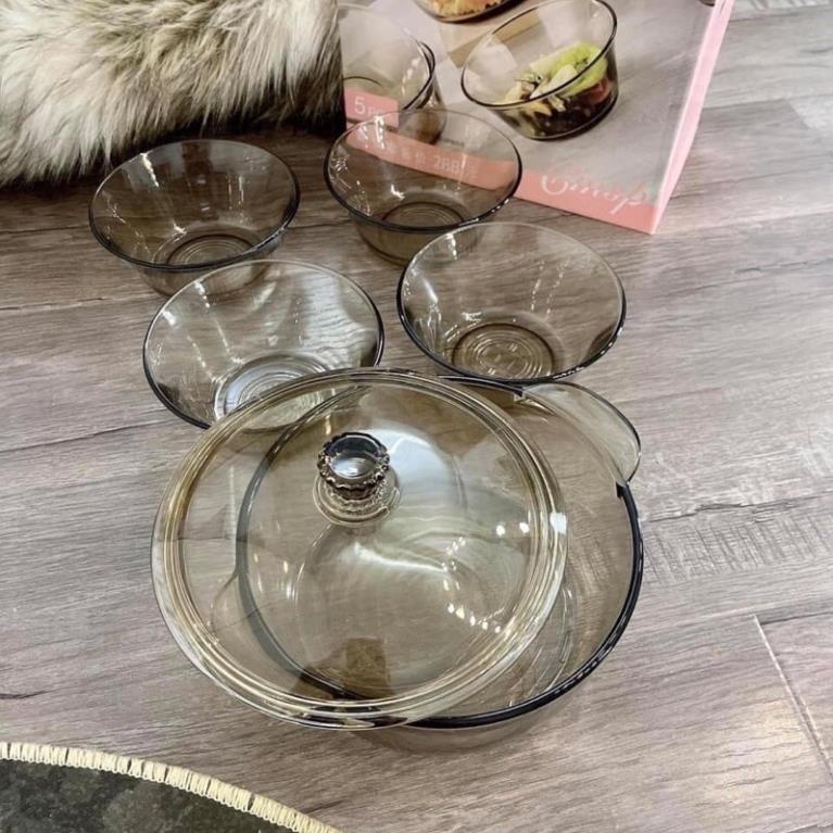 Nhà cửa & Đời sống > Bộ đồ bàn ăn > Tô || Bộ bát thuỷ tinh 5 món kiểu dáng hiện đại phong cách Châu ÂuCòn hàng
