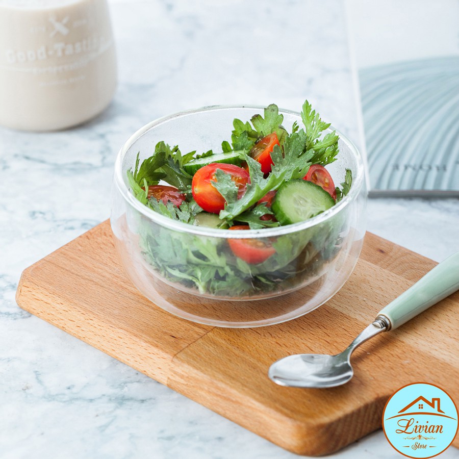 � Bát thủy tinh 2 lớp thích hợp sử dụng trong gia đình hàng ngày có thể đựng soup nóng, hoặc bày các món salad hoa quả, rau củ, ngũ cốc…