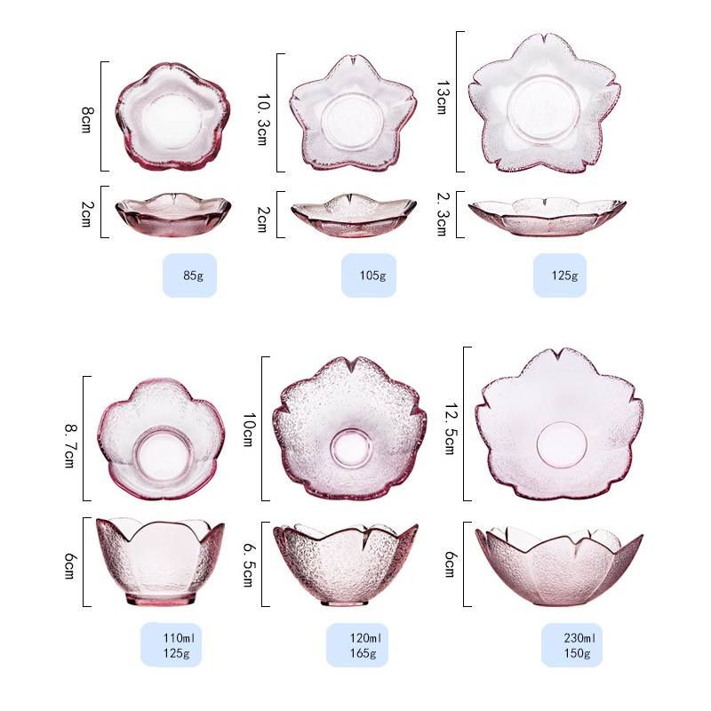 Bát Thủy Tinh Chén Thủy Tinh Đĩa Thủy Tinh Đựng Nước Chấm Hoa Anh Đào Decor Đẹp B002Chất liệu: thủy tinh