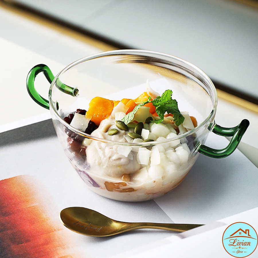 Nhà cửa & Đời sống > Bộ đồ bàn ăn > Tô || Bát thủy tinh chịu nhiệt có tay cầm màu xanh phong cách Bắc Âu cực xinhCòn hàng