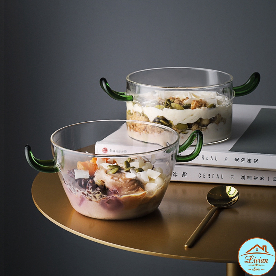 Giới thiệu Bát thủy tinh chịu nhiệt có tay cầm màu xanh phong cách Bắc Âu cực xinh