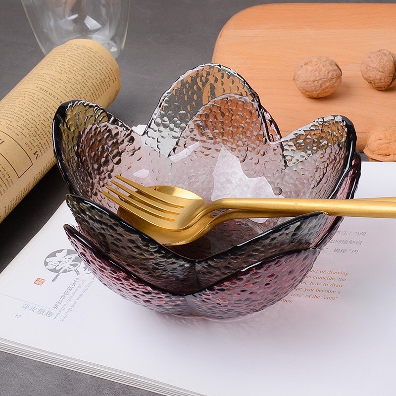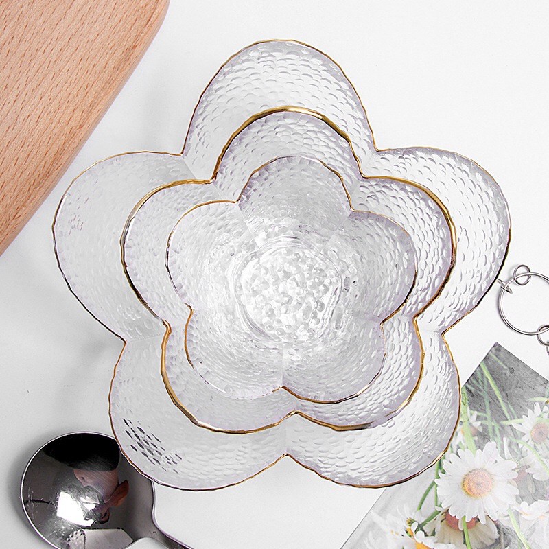 Nhà cửa & Đời sống > Bộ đồ bàn ăn > Dĩa || Bát thuỷ tinh hình hoa viền vàng cao cấp(chọn nhiều màu)Còn hàng