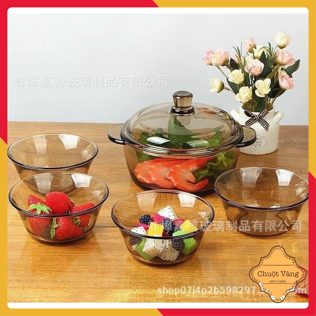 - Sản phẩm: Bộ tô thủy tinh chịu nhiệt có tai cầm (Nồi đựng không thể nấu)
