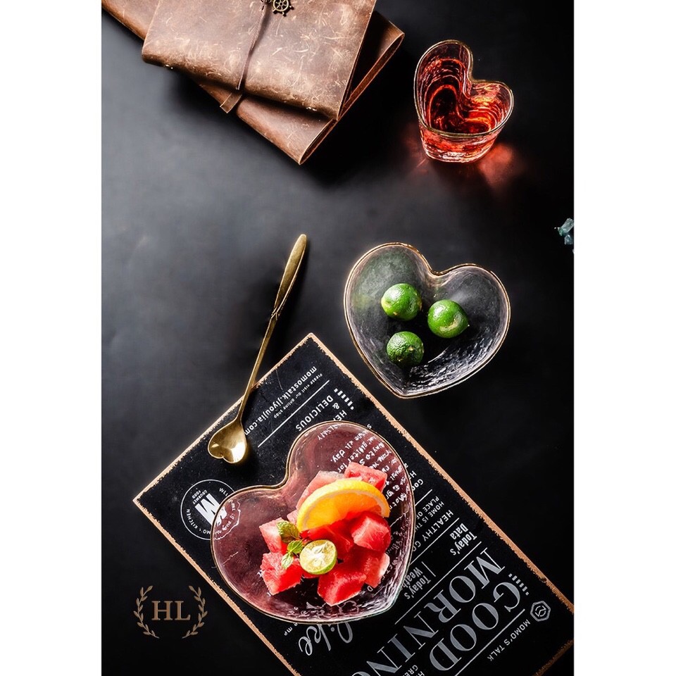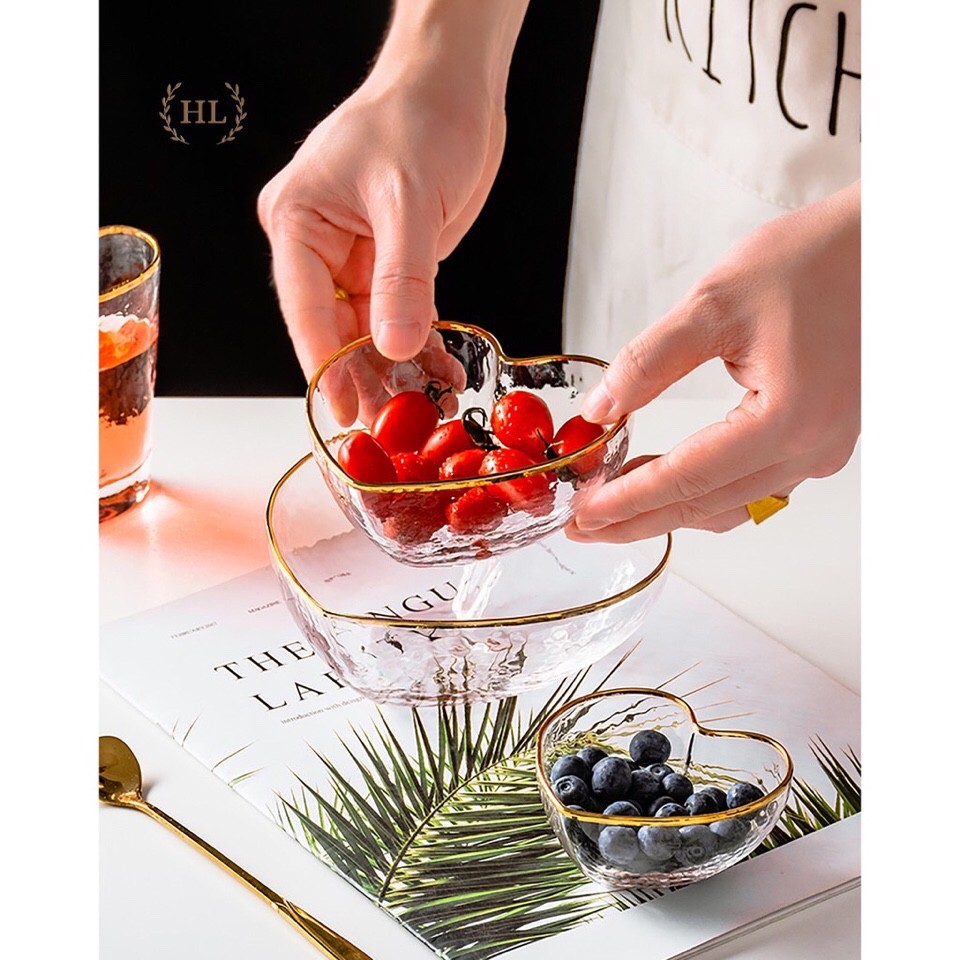Nhà cửa & Đời sống > Bộ đồ bàn ăn > Dĩa || Bát thủy tinh sần hình trái tim viền vàng mẫu mới-HLCòn hàng