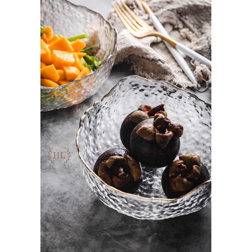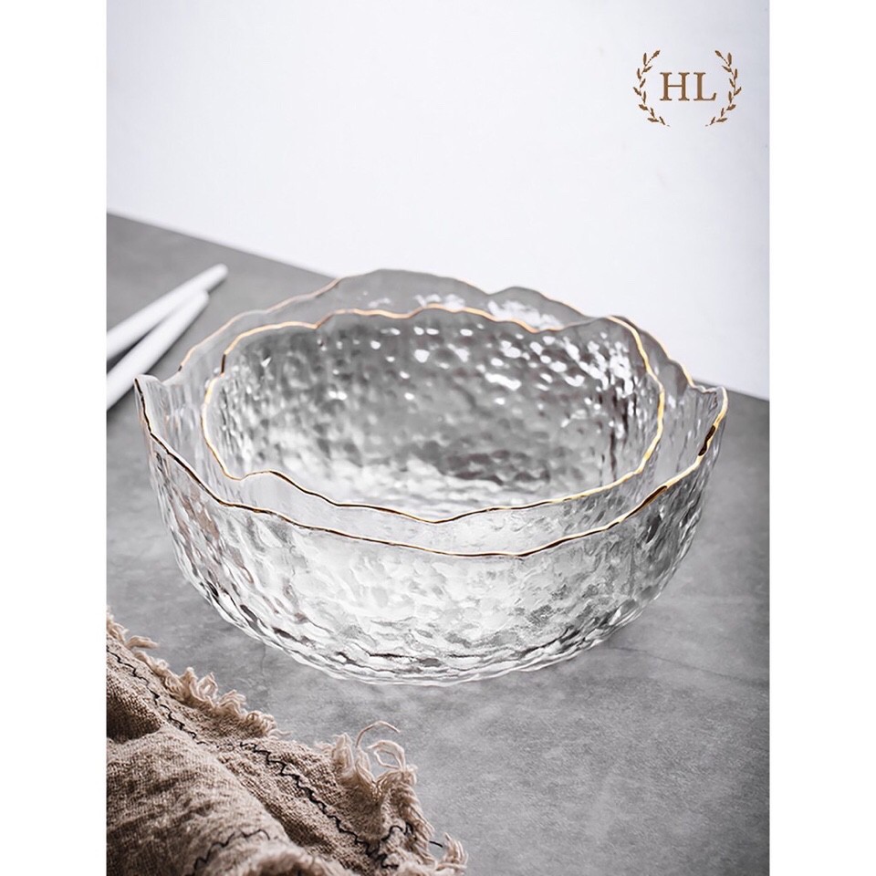 Nhà cửa & Đời sống > Bộ đồ bàn ăn > Tô || Bát thủy tinh sần miệng lượn viền màu vàng-HLCòn hàng