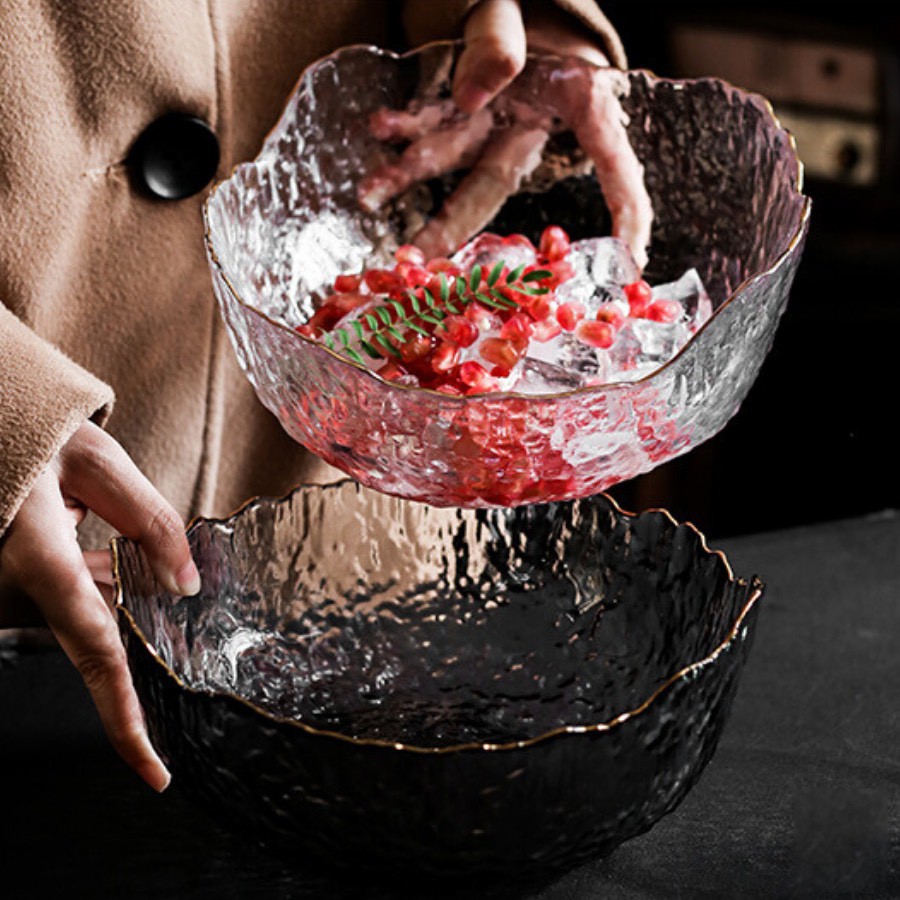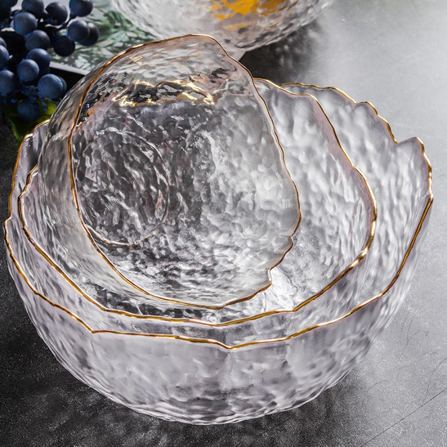 Bát thủy tinh, tô thủy tinh ánh pha lê viền vàng cao cấp 3 dung tích