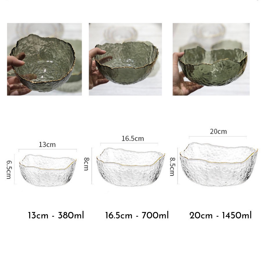 Giới thiệu Bát thủy tinh, tô thủy tinh ánh pha lê viền vàng cao cấp 3 dung tích