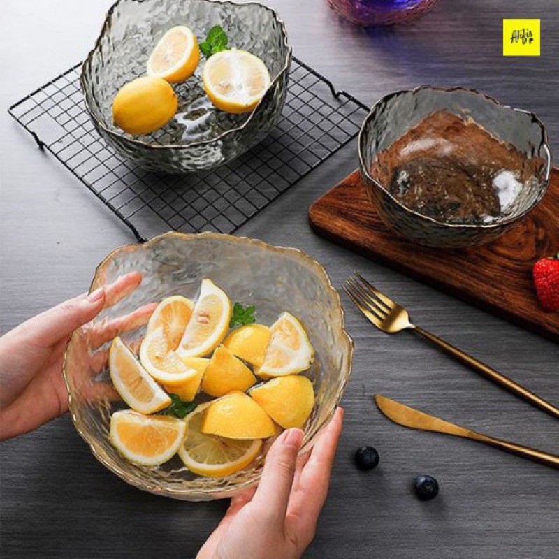 Bát thủy tinh, tô thủy tinh viền mạ vàng - 3 size 13cm, 16.5cm, 20cm