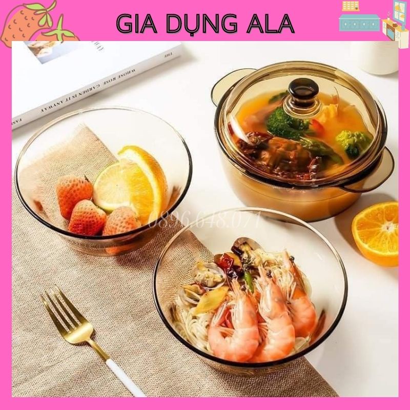 Bát Thủy Tinh Trong Suốt Chịu Nhiệt 5 Món, Bát Tô Thủy Tinh Kèm Nồi Có Nắp Kiểu Dáng Hiện Đại