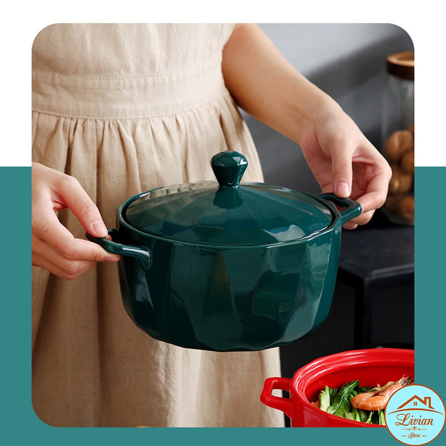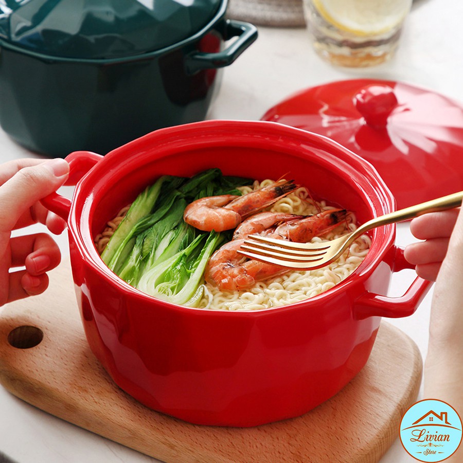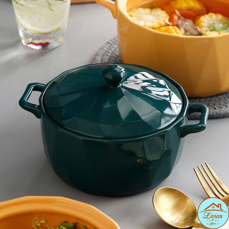 Nhà cửa & Đời sống > Bộ đồ bàn ăn > Tô || Bát tô ăn mì, tô sứ cao cấp chịu nhiệt có tay cầm kèm nắp họa tiết kim cương - KÈM ẢNH THẬT-HÀNG CÓ SẴNCòn hàng