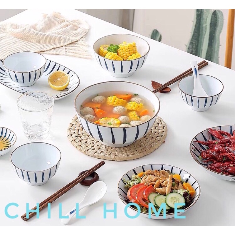 Nhà cửa & Đời sống > Bộ đồ bàn ăn > Tô || Bát tô canh họa tiết kẻ, tô bún phở bằng sứ hàng Bát Tràng ,phong cách Nhật Bản,Bát Dĩa Decor size 20cmCòn hàng