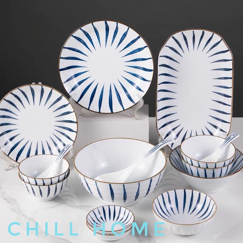 Bát tô được vẽ với họa tiết kẻ,mang đến sự hàng hòa trang nhã cho cho bộ bát