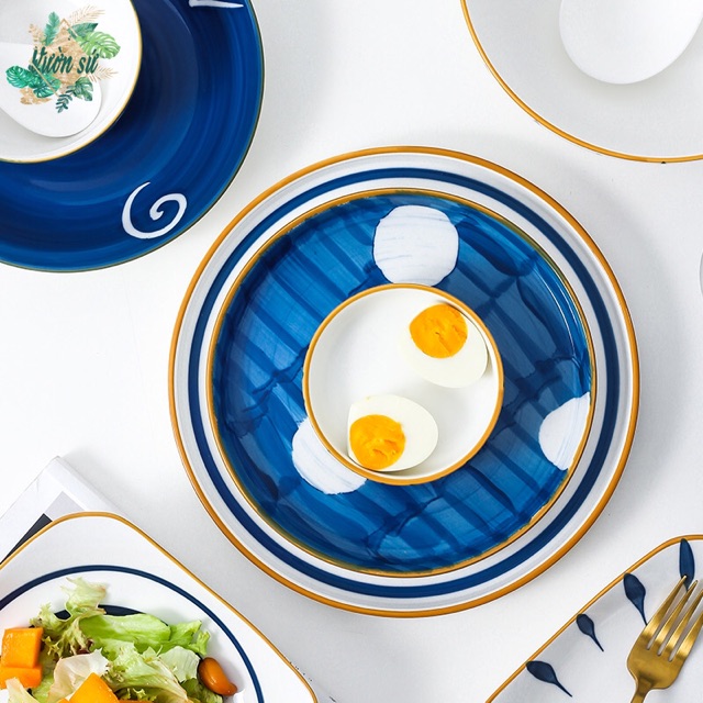 Nhà cửa & Đời sống > Bộ đồ bàn ăn > Dĩa || Bát tô, đĩa sứ màu xanh biển phong cách Nhật Bản - VS82Còn hàng