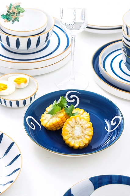 Bát tô, đĩa sứ màu xanh biển phong cách Nhật Bản - VS82