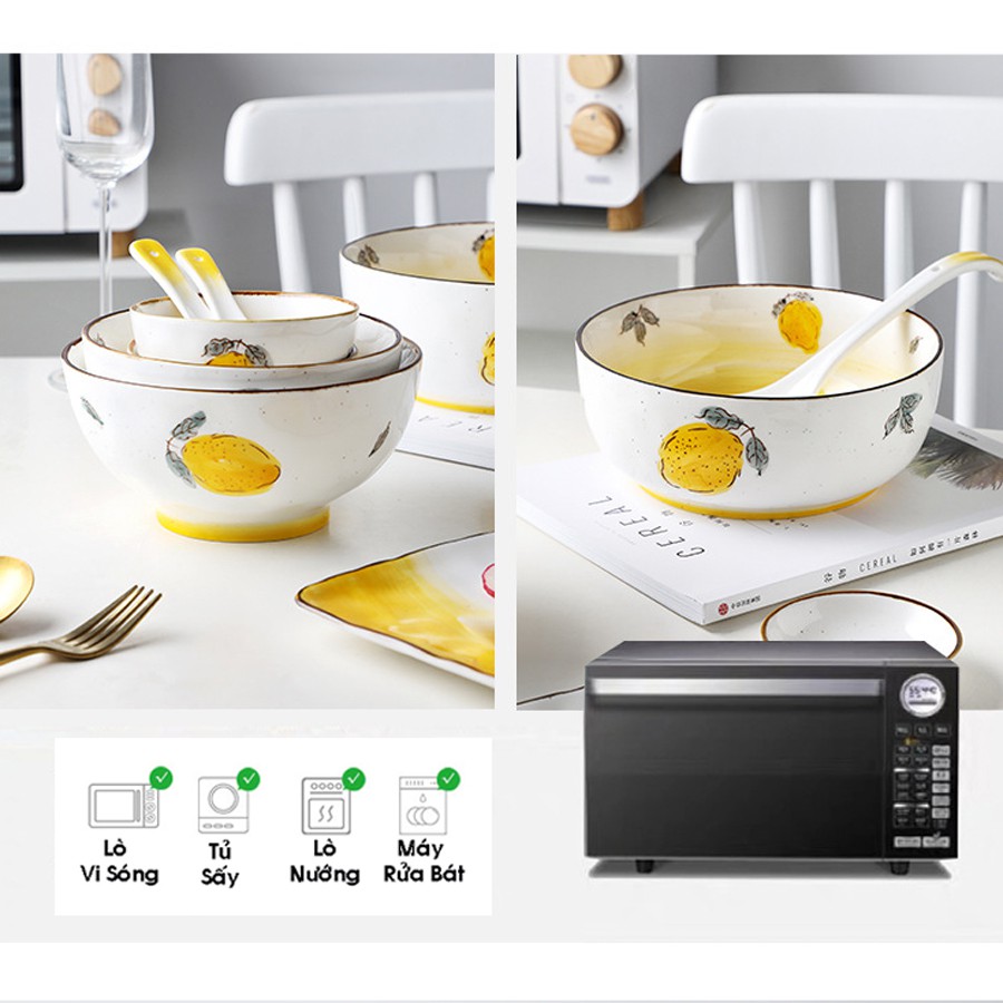 Bát tô đựng phở, bát đựng canh họa tiết chanh vàng vẽ tay 7inch cực xinh