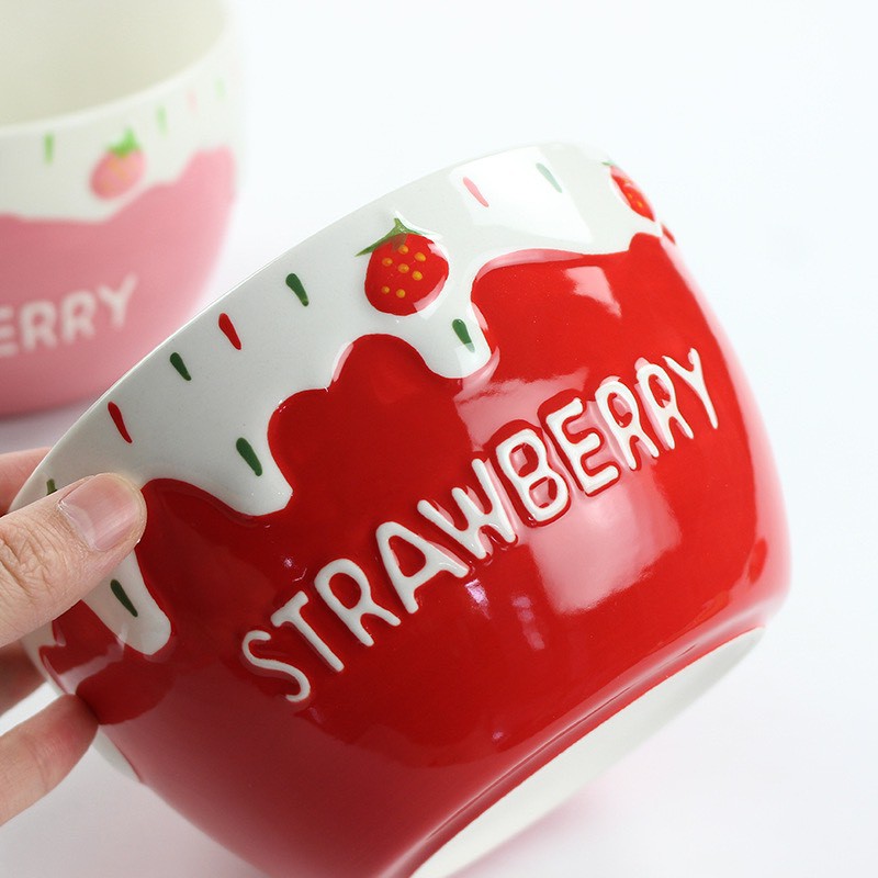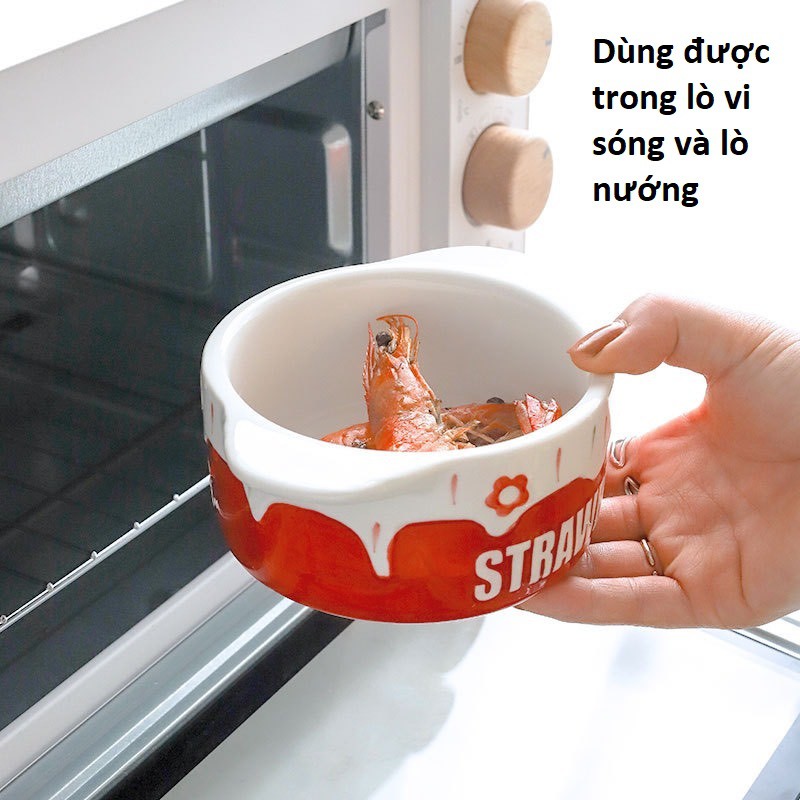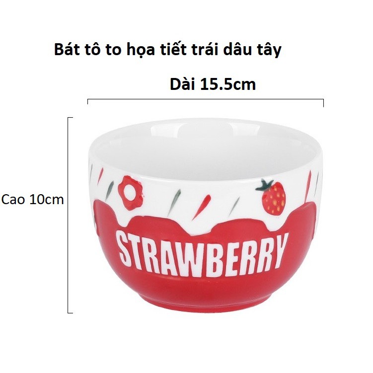 Bát Tô Gốm Sứ Tráng Men Cao Cấp Họa Tiết Dâu Tây