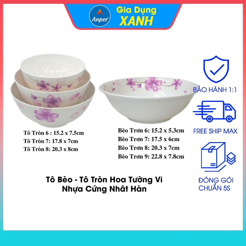 • Kích thước: Tô Tròn: 15.2x7.5cm/17.8x7cm/20.3x8cm; Tô Bèo: 15.2x5.3cm/17.5x6cm/20.3x7cm/22.8x7.8cm