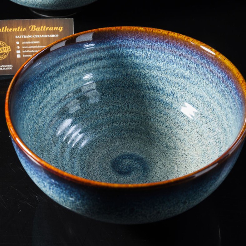 Bát gốm sứ Bát Tràng được thiết kế với kiểu dáng đơn giản kết hợp với màu xanh tinh tế của men hỏa biến tôn lên được giá trị của sản phẩm gốm sứ cao cấp. Bát gốm được nung ở nhiệt độ cao nên có độ bền tốt, đặc biệt không bị bám bẩn, dễ dàng vệ sinh lau rửa sản phẩm trong quá trình sử dụng.