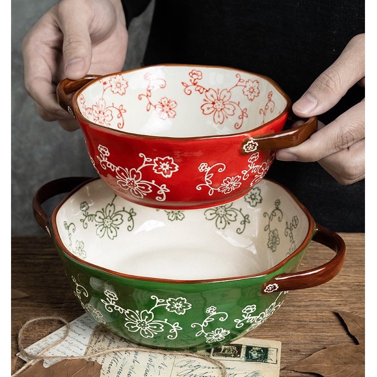 Nhà cửa & Đời sống > Bộ đồ bàn ăn > Tô || Bát tô sứ 2 tai họa tiết hoa đào phong cách Nhật Bản đường kính 15.5cm dung tích 620mlCòn hàng