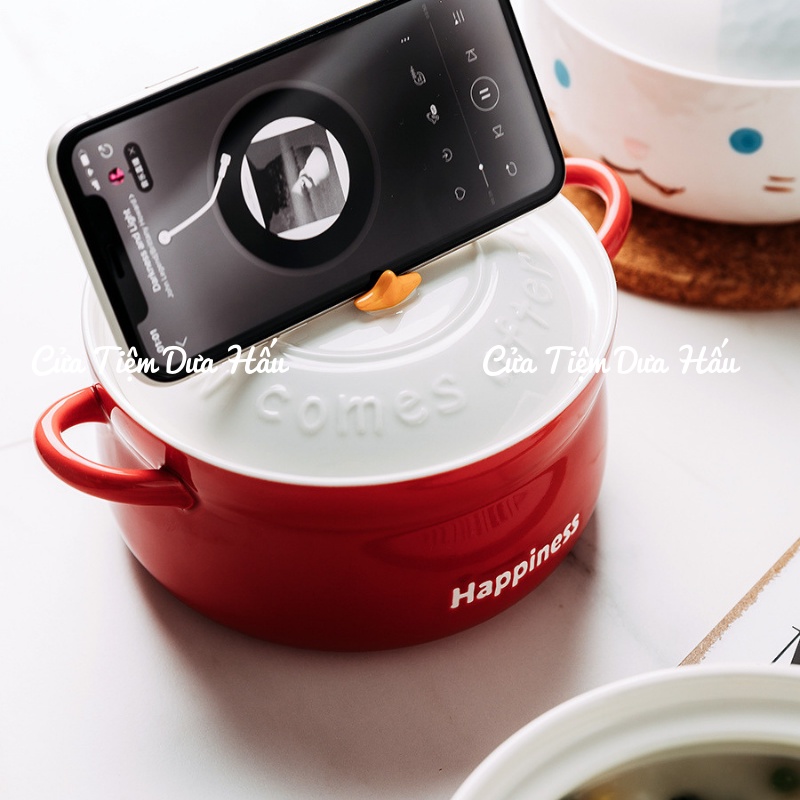 Bát Tô Sứ Cầu Vồng Đỏ,Bát Tô Ăn Mì 850ml Happiness Có Tay Cầm Tiện Dụng Cửa Tiệm Dưa Hấu