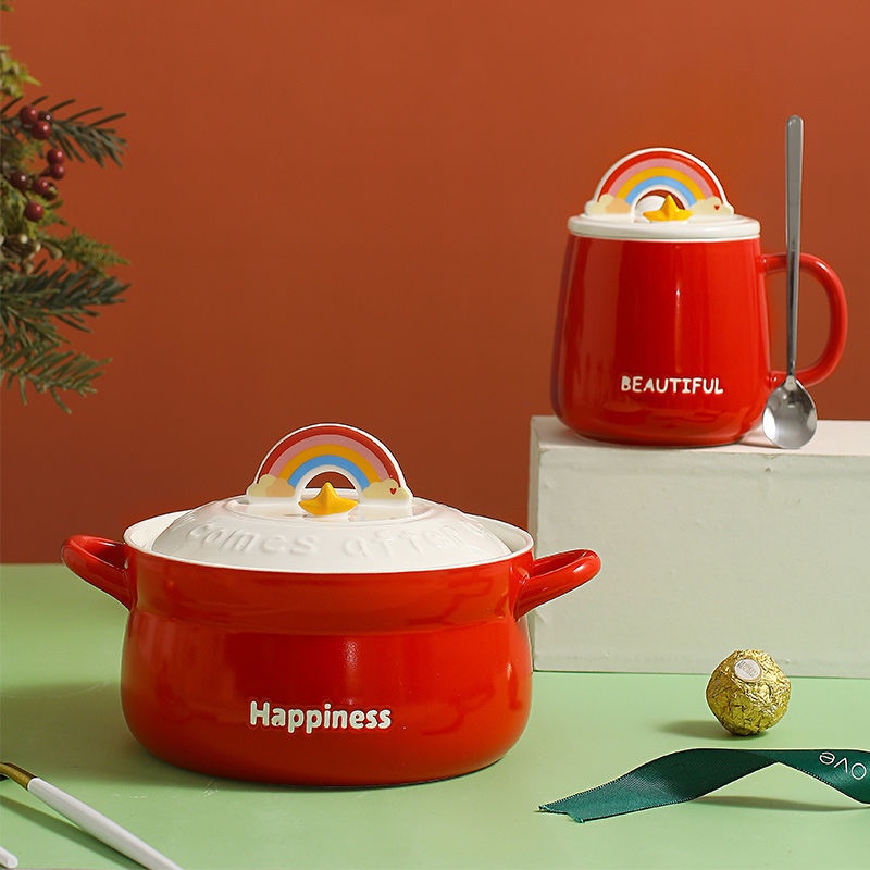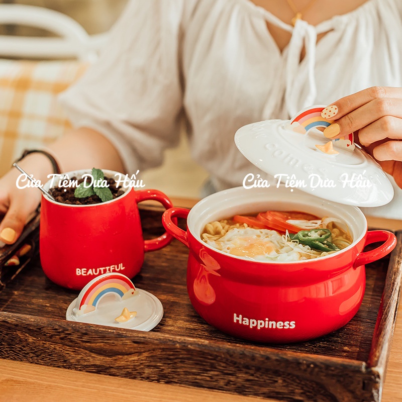 Nhà cửa & Đời sống > Bộ đồ bàn ăn > Tô || Bát Tô Sứ Cầu Vồng Đỏ,Bát Tô Ăn Mì 850ml Happiness Có Tay Cầm Tiện Dụng Cửa Tiệm Dưa HấuCòn hàng