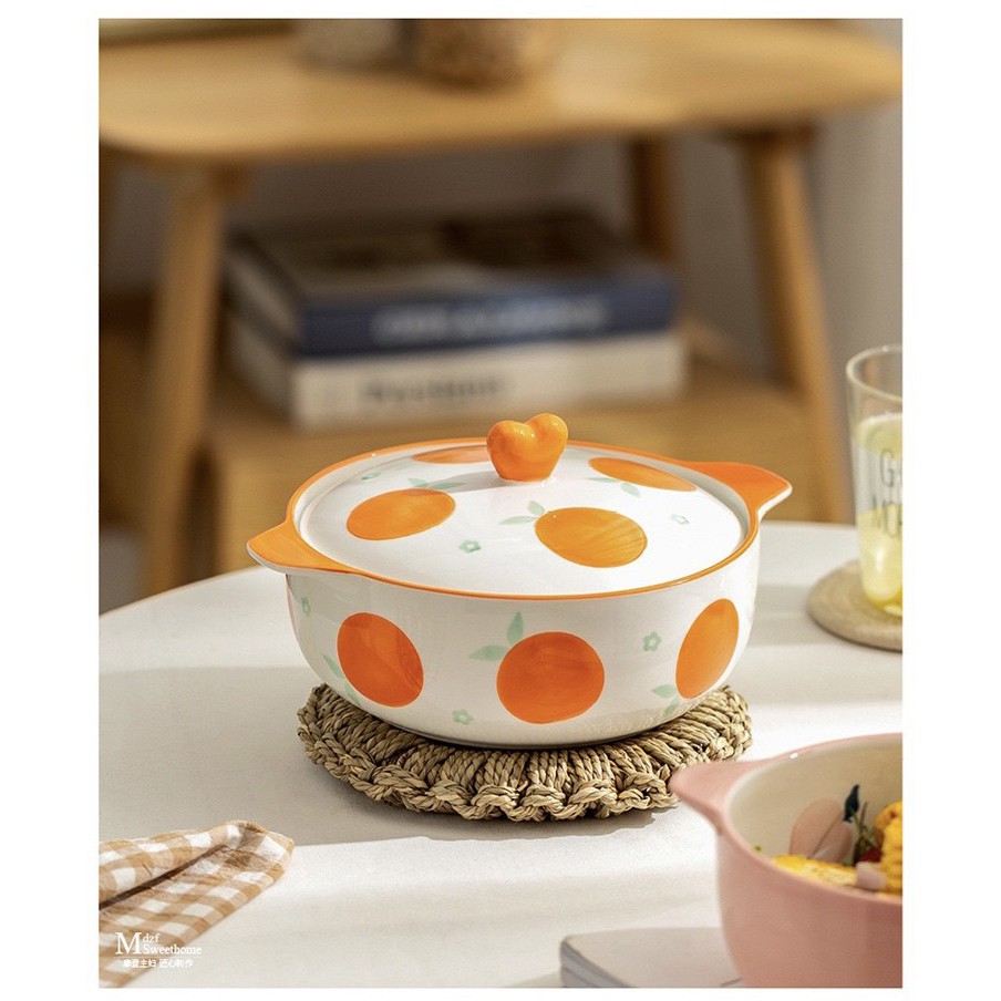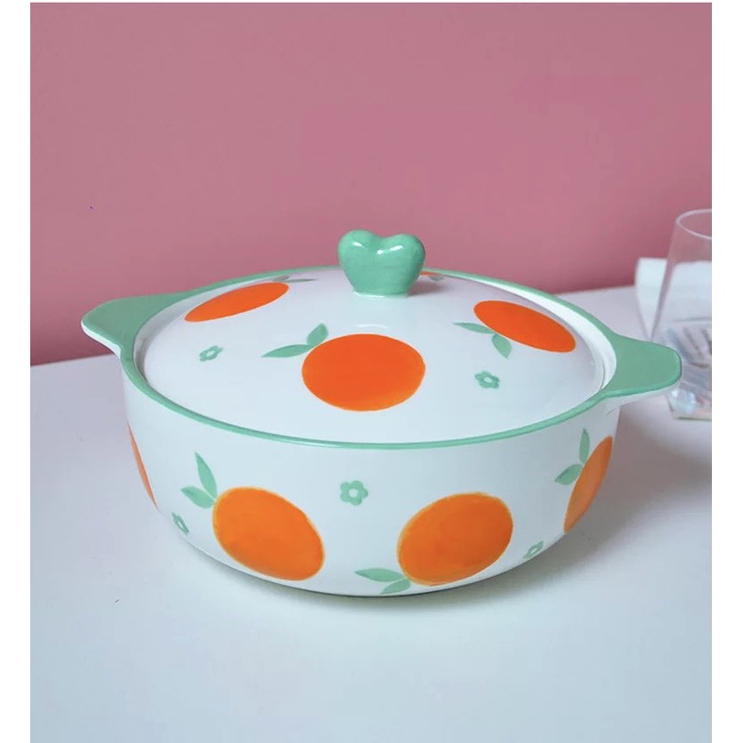 Nhà cửa & Đời sống > Bộ đồ bàn ăn > Tô || Bát tô sứ cỡ lớn có nắp hình hoa quảCòn hàng