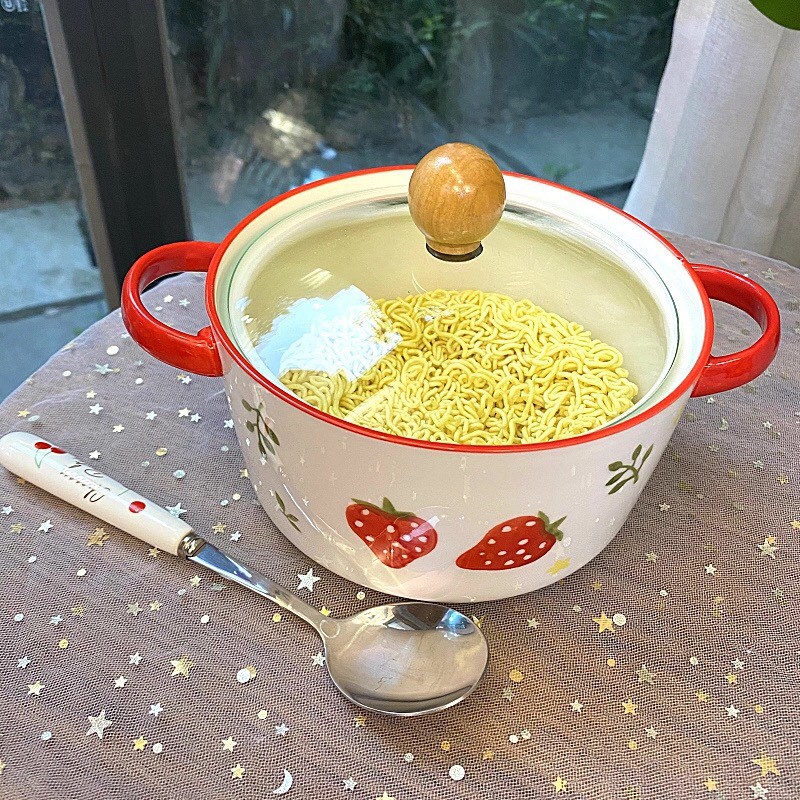 Bát tô sứ có nắp kính họa tiết dâu tây dung tích 900ml