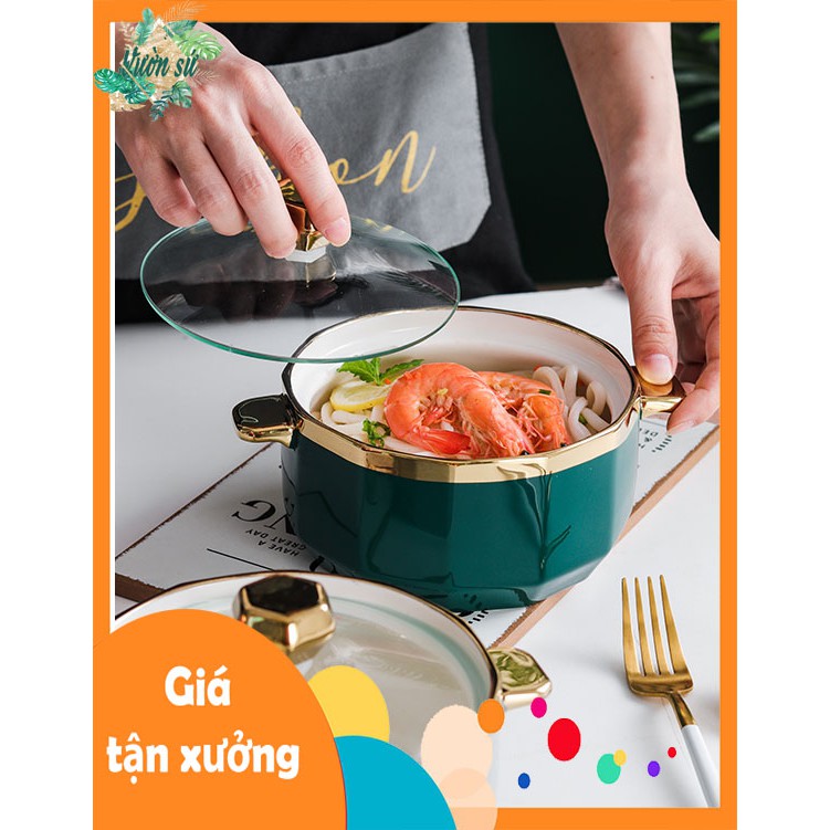 Nhà cửa & Đời sống > Bộ đồ bàn ăn > Tô || Bát tô sứ có tay cầm, có nắp thủy tinh cao cấp - VS04Còn hàng