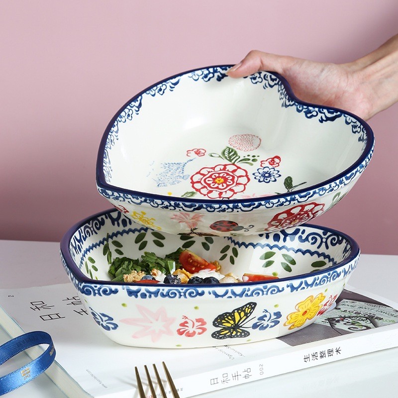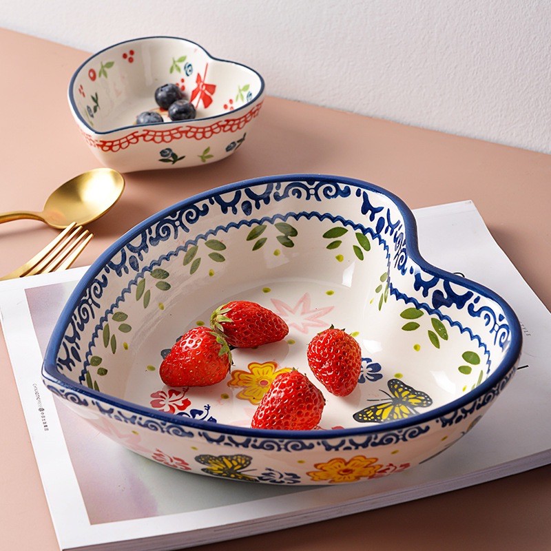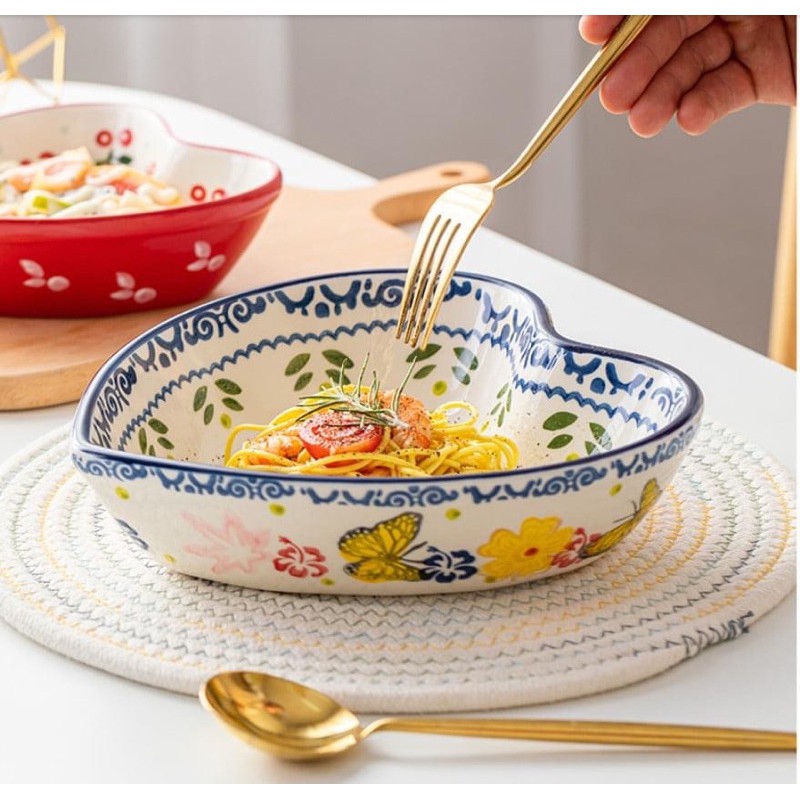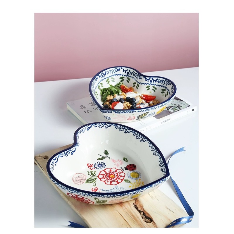 Nhà cửa & Đời sống > Bộ đồ bàn ăn > Tô || Bát tô sứ hình trái tim hoạ tiết hoa và bướm kiểu Bắc ÂuCòn hàng