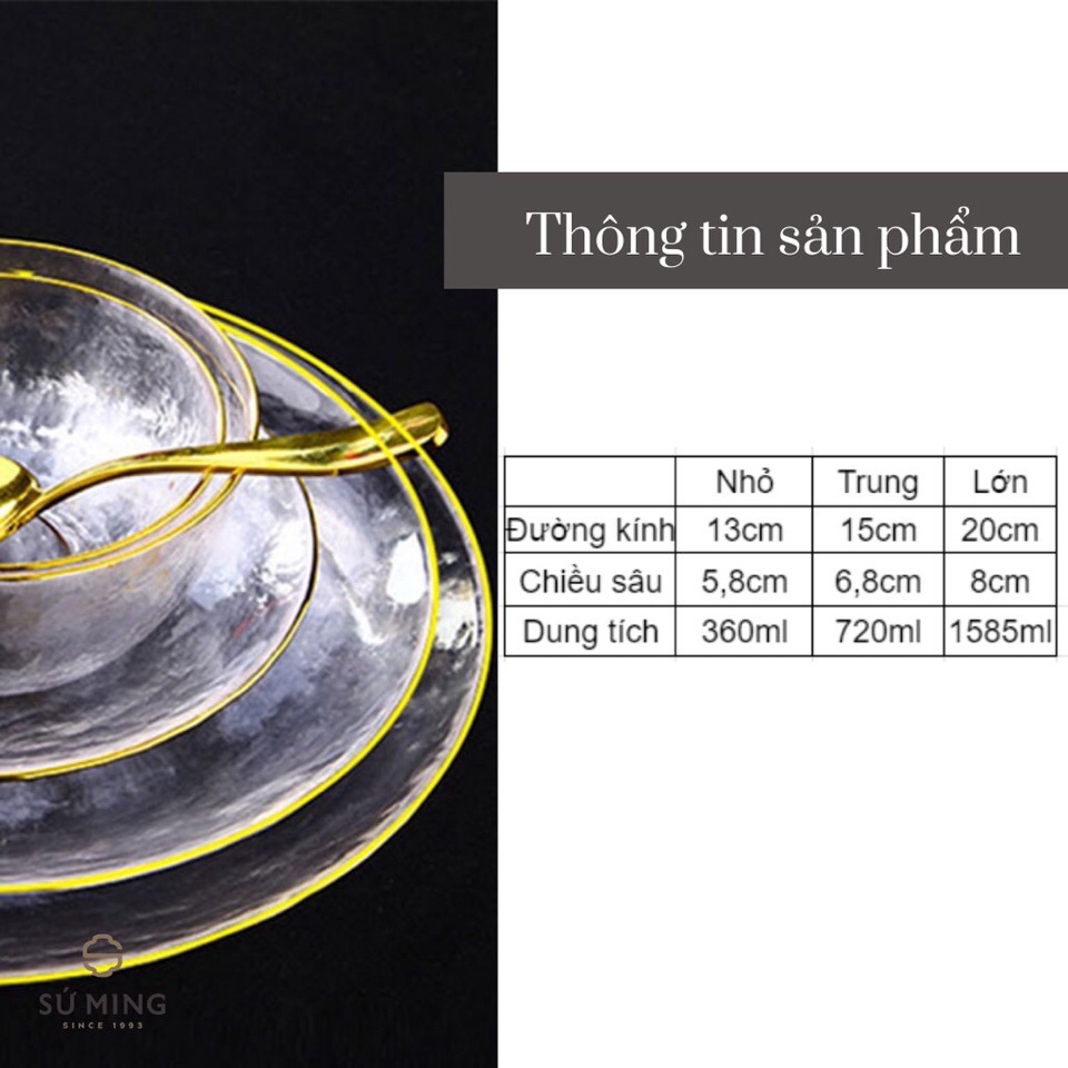 Giới thiệu Bát tô thủy tinh tròn trơn viền vàng TH