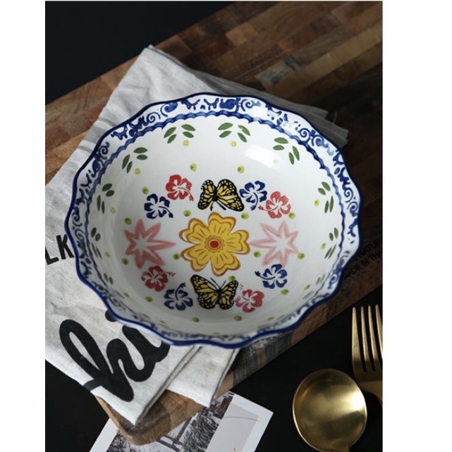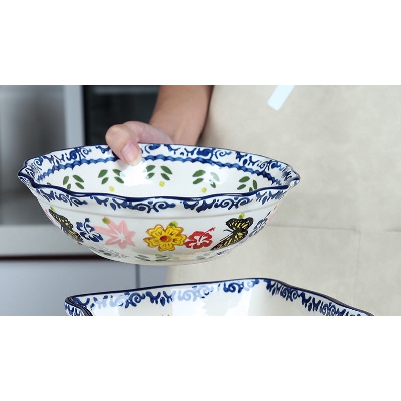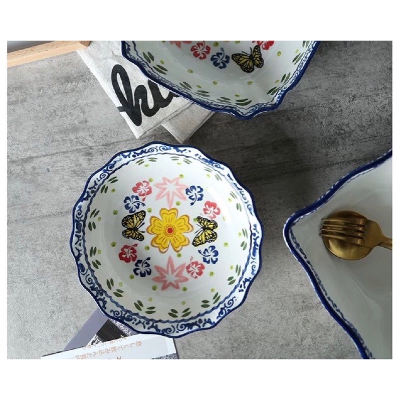 Nhà cửa & Đời sống > Bộ đồ bàn ăn > Tô || Bát tô tròn miệng sóng hoạ tiết hoa bướmCòn hàng