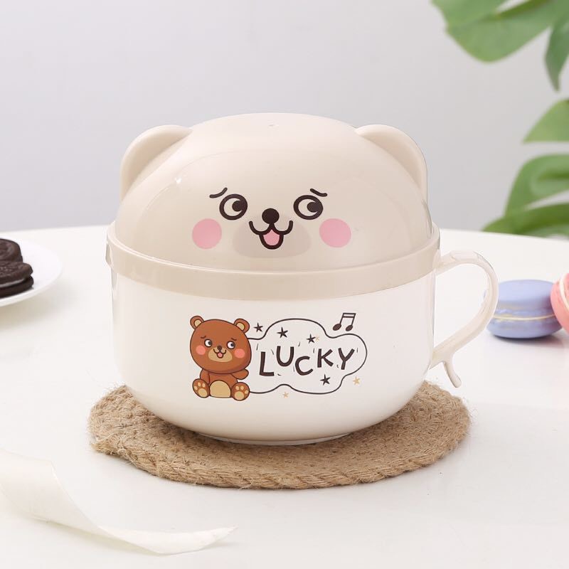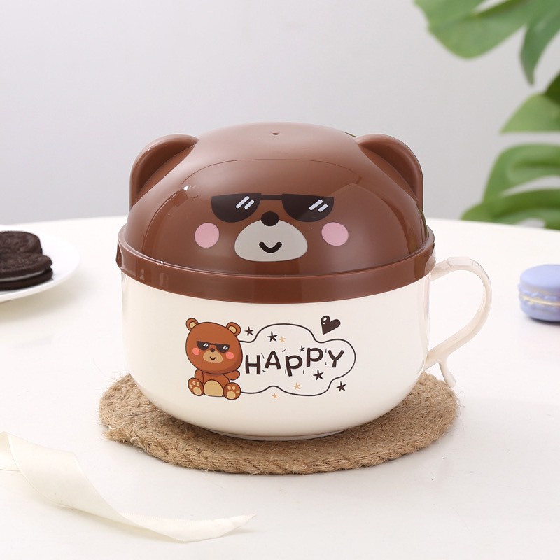Bát tô úp mì ruột inox chống nóng hình gấu kèm thìa và nắp đậy tiện dụng