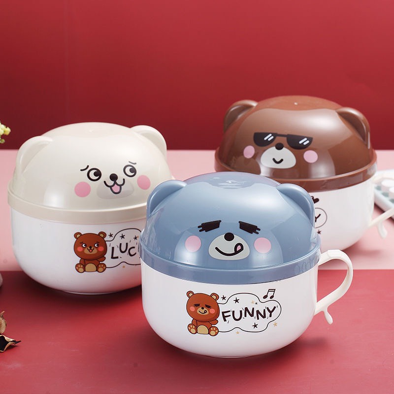 Bát tô úp mì ruột inox chống nóng hình gấu kèm thìa và nắp đậy tiện dụngCông dụng sản phẩm