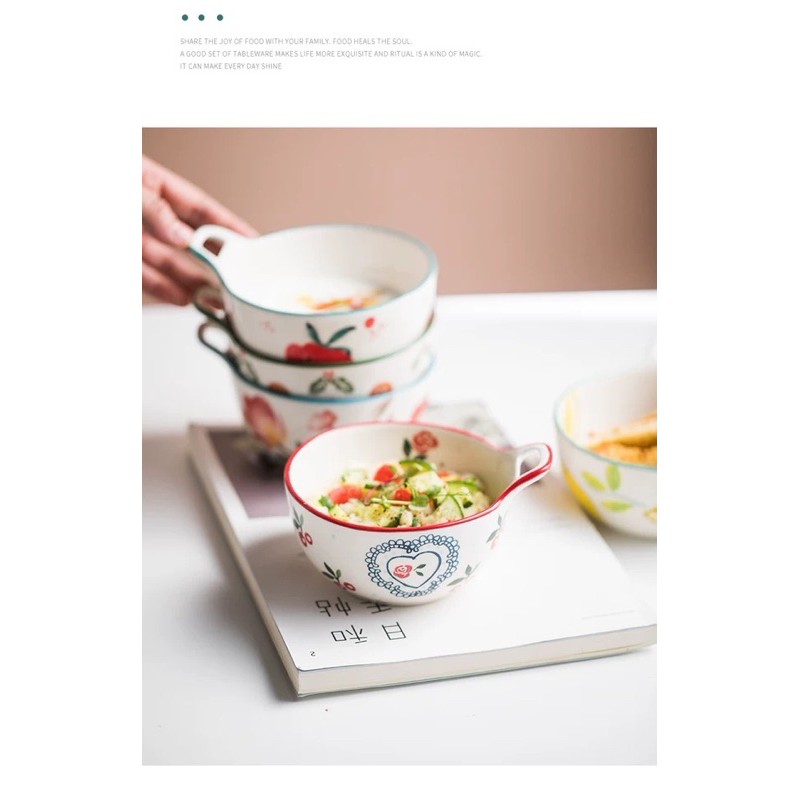 Nhà cửa & Đời sống > Bộ đồ bàn ăn > Tô || Bát tròn 1 tai Cherry hoa hồng Bắc ÂuCòn hàng