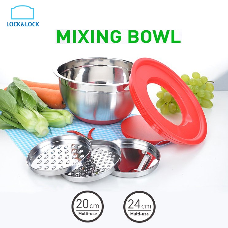 Bộ Bát Trộn Inox Và Bàn Mài Lock&Lock MIX3242-G / MIX3202-G (Bào Nhuyễn, Bào Sợi, Cắt Lát)- Thương hiệu: Chính hãng Lock&Lock