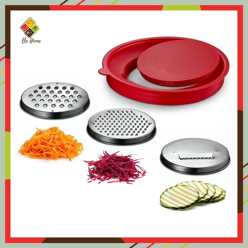 Dùng để mài củ quả và trộn thực phẩm, đi kèm 3 bàn mài với các chi tiết khác nhau giúp bạn dễ dàng nạo các loại củ quả đồng đều thành các hình dạng khác nhau, sau đó thực phẩm sẽ rơi xuống lòng bát giúp bạn có thể trộn trực tiếp, tạo ra các loại nộm, salad... ngon miệng một cách dễ dàng và không tốn nhiều thời gian.