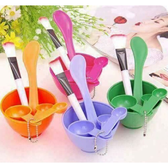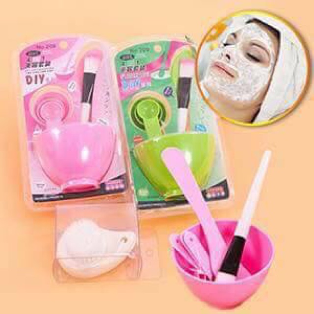Bát trộn mặt nạ:– Bộ dụng cụ đắp mặt nạ tại nhà bao gồm : 1 bát , 1 que trộn , 1 chổi cọ và 3 thìa đong nguyên liệu