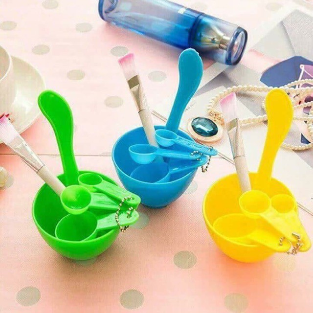 Bát trộn mặt nạ:– Bộ dụng cụ đắp mặt nạ tại nhà bao gồm : 1 bát , ộn , 1 chổi cọ và 3 thìa đong nguyên liệu
